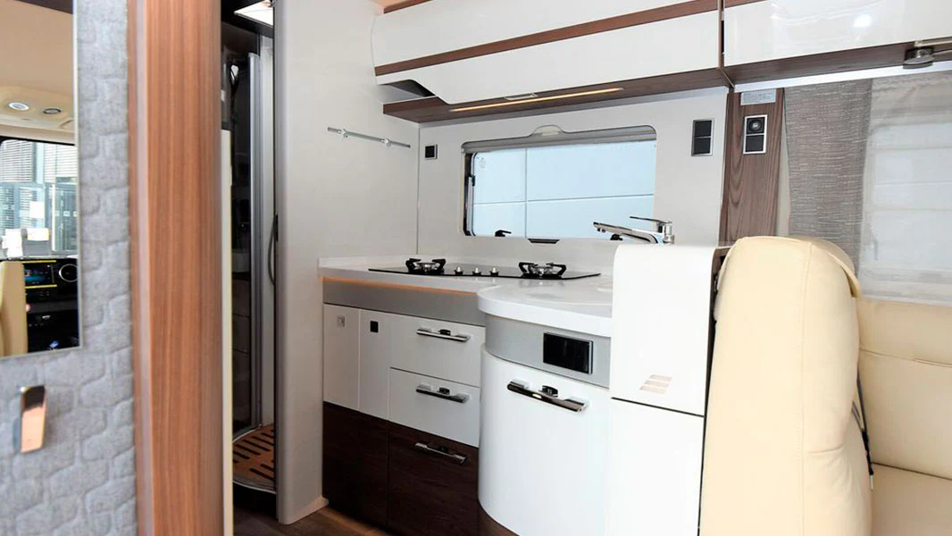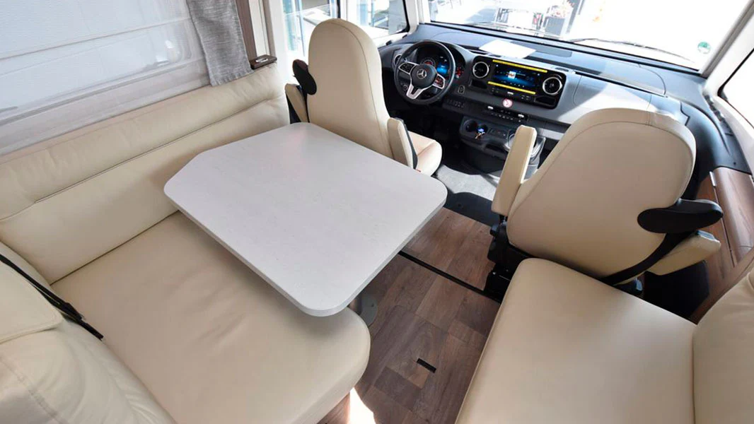 ABS • Adaptive Cruise Control • Awning • Bed • Central locking • DAB radio • ESP • Leather steering wheel • Middle Seating Arrangement • Multifunction steering wheel • Navigation system • Particulate filter • Power Assisted Steering • Rear Garage • Renting Possible • Secondary Air Conditioning • Separate Shower • Solar Energy System • Tuner/radio • TV • WC
