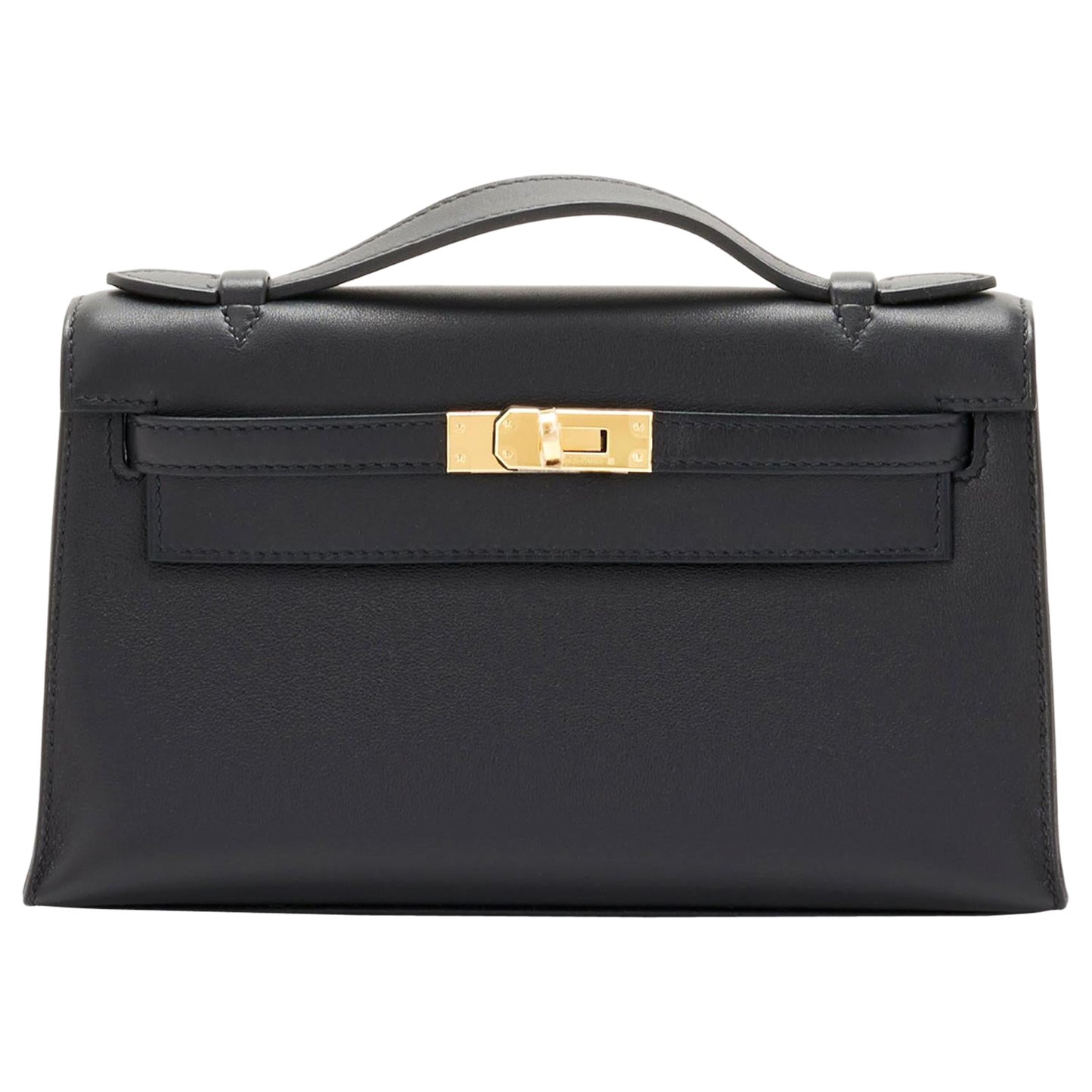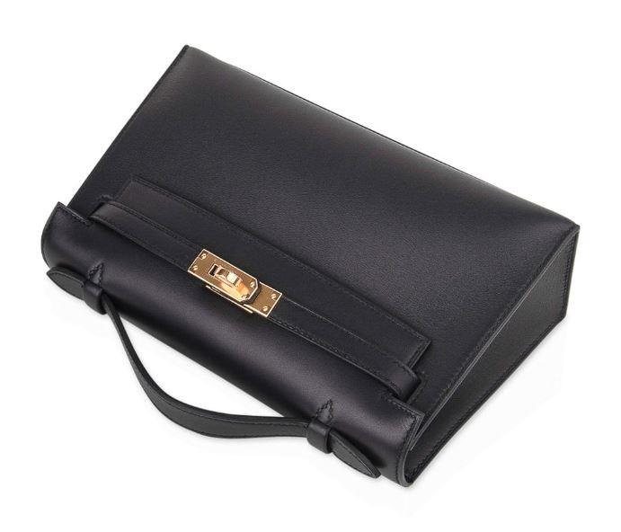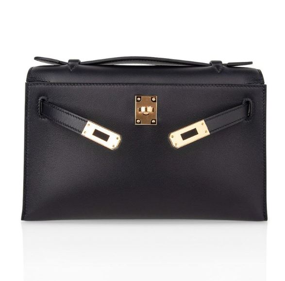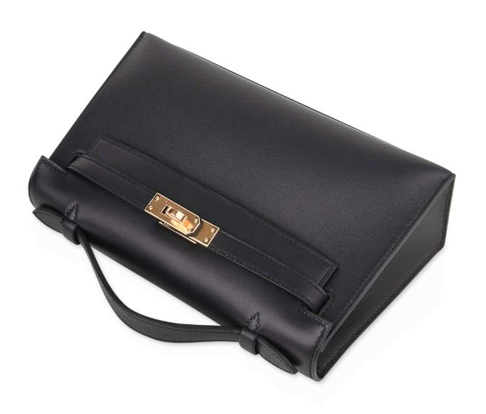 Hermes Kelly Pochette Black Gold Hardware Clutch Cut Bag Z Stamp, 2023